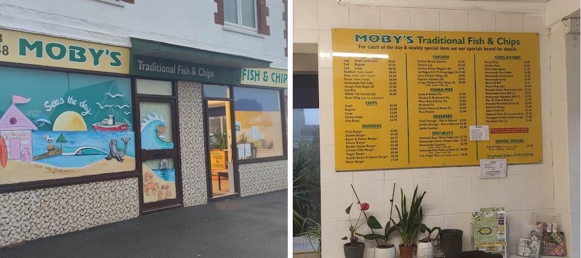Discover the best fish and chips at Mobys Seafood in Bracklesham Bay! Enjoy our crispy battered cod, generous portions, and delicious curry alongside breathtaking beach views. Perfect for takeaway – come see why locals rave about our value! Call us at +44 1243 670748.