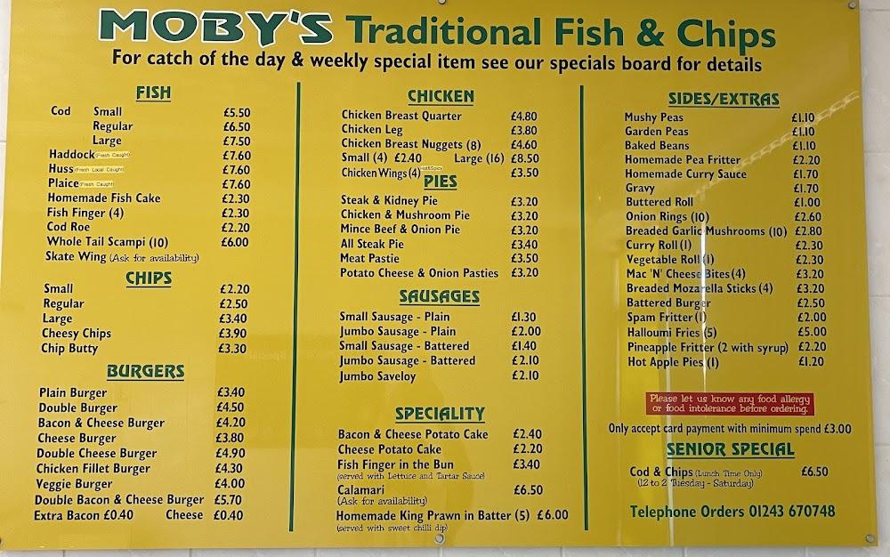 Mobys Seafood is tucked away at 2 Bracklesham Lane, just a stone’s throw from the beautiful Bracklesham Bay. This convenient location attracts hungry beachgoers and locals craving a taste of the sea. The takeaway-only format means you can grab your meal and head to the beach for a seaside picnic or enjoy a cozy family dinner at home. The area is vibrant and friendly, making it an excellent spot for families, LGBTQ+ patrons, and anyone looking to enjoy a casual meal. With on-site parking and a wheelchair-accessible entrance, Mobys makes it easy for everyone to enjoy its offerings. The menu is extensive, featuring many fish dishes, chicken options, and a treasure trove of sides, catering to all dietary preferences. Mobys has stood the test of time; several patrons reminisce about visiting since childhood, showcasing its lasting appeal and community ties. The friendly staff and quick service add to the welcoming vibe, making each visit a pleasure. Plus, they’re just a short walk from the beach, which allows for a perfect post-meal stroll.